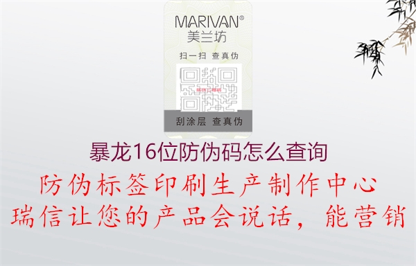 暴龙(Bawang)是一个的中国品牌,主要生产和销售个人护理产品,如洗发水、护发素、护发油等。暴龙的产品通常附带具有16位防伪码。要查询暴龙16位防伪码,您可以按照以下步骤进行操作: